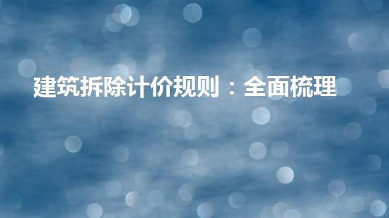 摘要:建筑拆除是一个重要的环节,在拆除过程中,计价规则的制定至关重要。本文将从多个方面深入探讨建筑拆除计价规则的全面梳理方案与价格计算,为读者提供专业支持和参考。正文:一、拆除前的准备工作在拆除前的准...