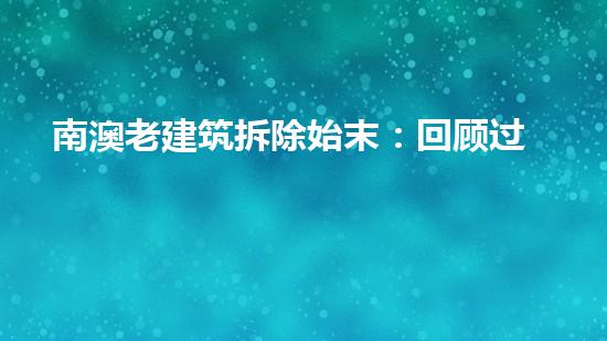 摘要:南澳老建筑的拆除始末引发了广泛的讨论和争议。本文将从拆除行业专家的角度出发,回顾南澳老建筑拆除的历史,深入探讨拆除的技术和方法,并展望未来拆除行业发展的趋势。正文:一、历史回顾回顾南澳老建筑的拆...