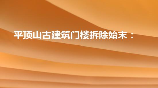 平顶山古建筑门楼拆除始末:历史文化遗产何去何从?