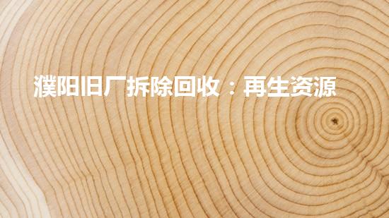 濮阳旧厂拆除回收:再生资源行业的新机遇