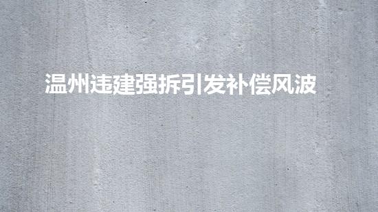 摘要:温州违建强拆引发补偿风波,这是一个备受争议的话题。在此背景下,本文以化工拆除行业专家的角度,从不同的角度深入探讨了这个话题。本文主要分为四个部分:第一部分介绍了温州违建强拆背景及相关情况;第二部...