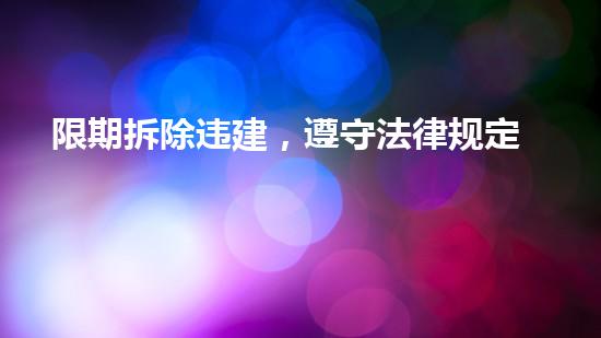 摘要:本文讲述了限期拆除违建,遵守法律规定的重要性,并介绍了相关背景信息。从化工技术专家的角度出发,本文对限期拆除违建,遵守法律规定进行了详细专业深入的阐述。主要内容包括拆除前准备工作、拆除技术、污染...