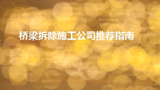 摘要:本文将为读者介绍桥梁拆除施工公司的推荐指南,为读者提供该领域的背景信息。在本文的正文中,本文将从拆除行业专家的角度,对桥梁拆除施工公司推荐指南进行详细专业深入的阐述,包括公司信誉度、施工技术能力...