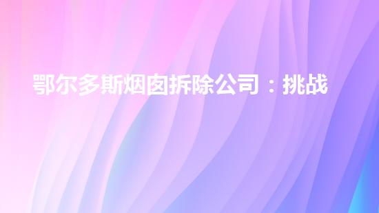 摘要:鄂尔多斯烟囱拆除公司是一家致力于超越高度挑战天际的专业拆除公司。本文将详细介绍该公司的运作模式、技术优势、设备优势、环保施工等方面,旨在为读者揭开该公司的神秘面纱,让读者更好地了解这个高度挑战的...