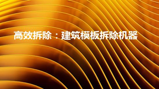 摘要:本文将介绍高效拆除:建筑模板拆除机器的革新技术。随着国家对建筑结构的要求越来越高,传统拆除方式已经无法满足需求。本文将详细分析该技术的特点和应用,以及其对环保施工的意义。正文:一、 设备智能化技...