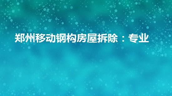郑州移动钢构房屋拆除:专业快速的拆除方案和服务