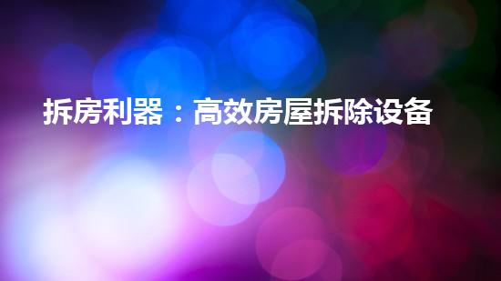 摘要:本文将介绍拆房利器:高效房屋拆除设备解析。我们将从多个方面对这些设备进行深入分析。这些设备能够以惊人的效率拆除房屋,同时也会引起人们关注到房屋拆除带来的安全隐患问题。通过深入分析这些设备的工作原...