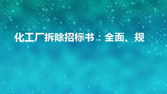 摘要:本文主要介绍了化工厂拆除招标书:全面、规范、可靠!的相关内容,通过引出读者的兴趣和提供背景信息,让读者对该主题产生浓厚的兴趣和好奇心。同时,本文还将从多个方面对该问题进行深入详细的解析和分析,帮...