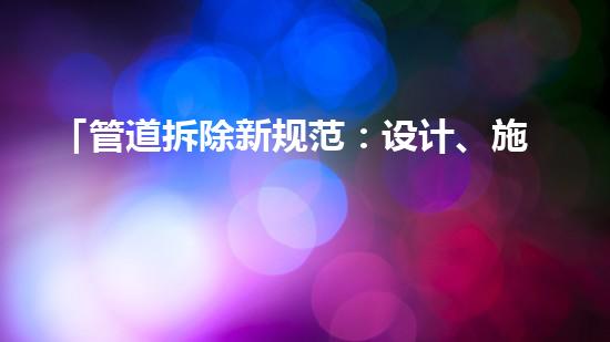 摘要:近年来,管道拆除的需求不断增加,但是由于缺乏规范的设计和施工方法,很多拆除工程出现了安全事故和环境污染问题。为了规范管道拆除的行业标准,本文介绍了一篇全方位指导文章,《管道拆除新规范:设计、施工...