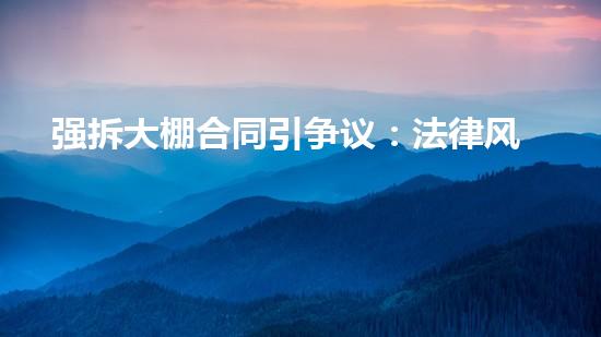 摘要:强拆大棚合同引发争议,既涉及法律风险,也涉及人情冷暖。本文以拆除行业专家的角度,从四个方面探讨这一问题,包括协议规定、方案设计、施工过程和环境保护。文章提出建议,旨在为该领域从业人员提供指导,同...