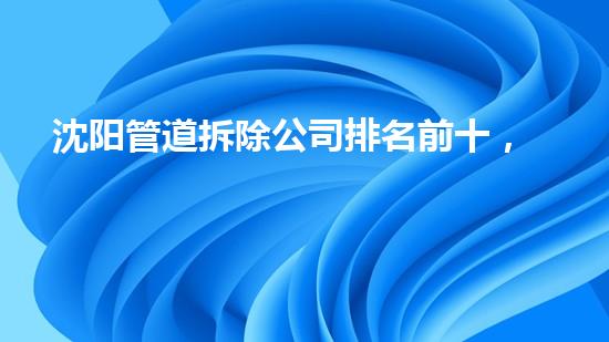 沈阳管道拆除公司排名前十,闻名全国!