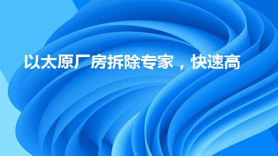 以太原厂房拆除专家,快速高效服务你的拆除需求