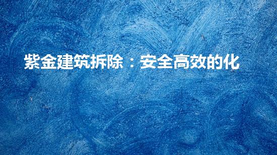 摘要:紫金建筑拆除是当前建筑行业中十分重要的一环,有助于为以后建筑发展提供更好的资源。本文将从化工技术的角度、安全高效的实践方法和拆除行业专家的角度出发,详细阐述了紫金建筑拆除:安全高效的化工技术实践...