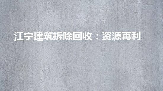 江宁建筑拆除回收:资源再利用促进可持续发展