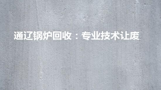 摘要:随着环保意识的增强,废气污染问题已经成为了人们普遍关注的话题。通辽锅炉回收:专业技术让废气污染得到杜绝,是一篇深入介绍人们如何利用专业技术解决废气污染问题的文章。本文将从多个方面阐述通辽锅炉回收...