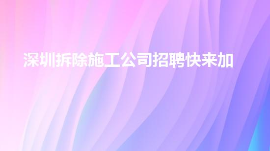 深圳拆除施工公司招聘 快来加入我们的团队!