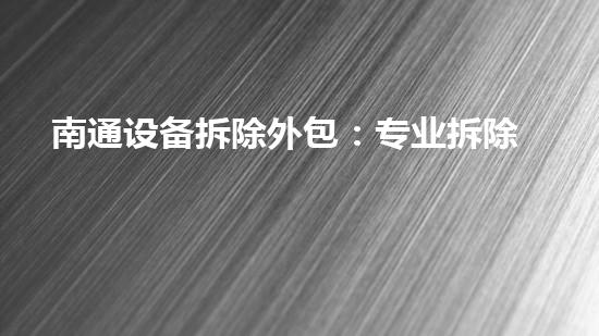 南通设备拆除外包:专业拆除服务一站式解决方案