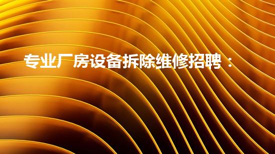 专业厂房设备拆除维修招聘:招聘经验丰富、技术过硬的维修工程师和拆除工人