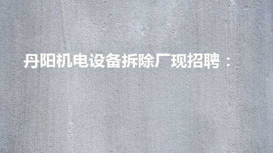 丹阳机电设备拆除厂现招聘:多个职位等你来!